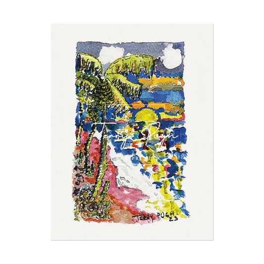 The Setting Sun Before Junkanoo – Watercolor Matte Poster by Terry Pugh